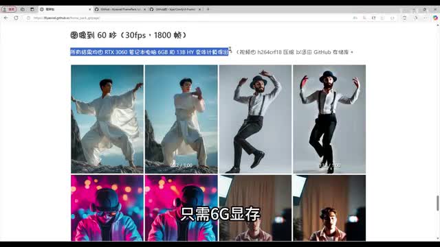 这个视频的生成原理就是将t t t曾添加到预先训练的transformer中使其能够生成具有时间一致性,在运动平滑度和整体美感方面优于所有其他极限green pack。只需六g显存就能流畅生成长达六十秒的高清视频,并且整体动作自然连贯,没有出现画面崩坏的情况。这就是赛博菩萨张灵敏大神最新开源的free tech项目。