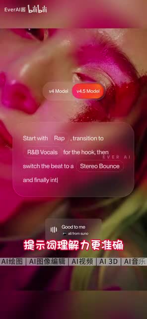 v四点五版本的音乐类型更多,有更智能的混搭效果,人声更具情感,声音质感提升,提示词理解力更准确,并上线了提示增强助手功能,同时升级翻唱加角色功能。f a i每天带你了解a i新鲜事。