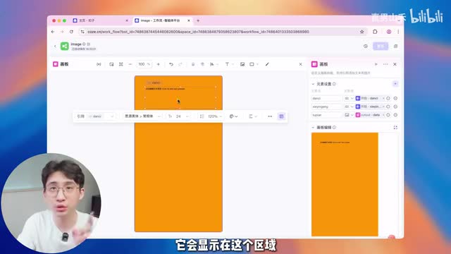 这里的名字最好跟前面是一致的,这样你不容易混淆。我们在引用这里第一个单词,我们就引用前面的那个单词,数据谐音梗也是引用前面的那个谐音梗。数据图片这里要注意,图片这里我们不能选择一开始的原始图片,因为我们刚刚把图已经抠出来了。我们选择下面这个抠图节点,然后选择这个后缀是图片的这个数据。点一下,然后我们双击编辑画板,这个画板它默认是十六比九的横屏图。
