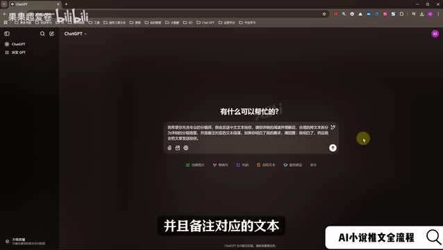 其实是可做可不做的,这个看我们个人的一个选择。然后第二个比较重要的就是分镜的处理了。分镜处理的意思就是将一段文本分成一个个的镜头,然后对应它所配的一个文本来进行一个对应。我们可以使用chat g p t来到chat g p t的这个界面,如果打不开的话,我们也可以用文心一言或者是豆包,和其他的语言模型也是差不多的。