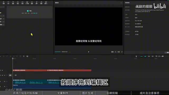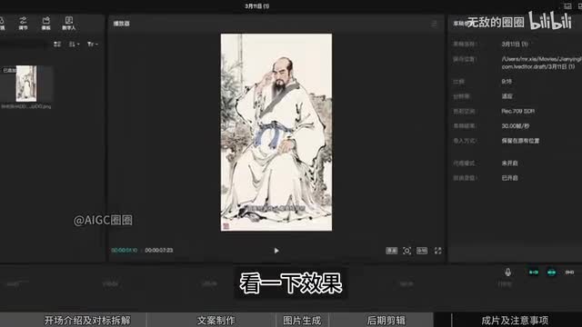 注意,这里有快捷的剪辑方式,打开剪辑工具,点击图文成片,点击自由编写文案,复制刚刚生成的文案,选择一个成文解说音色,点击生成视频。音频字母和背景音乐就自动匹配好了,接着导入刚刚生成的图片,按顺序拖到编辑区,根据音频调整下市场。注意,我们要一比一的复刻,对标视频需加入入场动画和关键帧,点击图片,点击入场动画,选择动态缩小效果。接着在动画结束时添加关键帧。