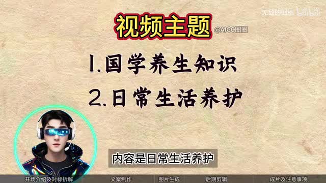 用来做国学养生知识视频涨粉会有多快?看这些账号通过发布国学养生知识视频,最火的视频突破十万赞藏。而且这个赛道吸引的都是高净值、消费力强的群体,流量好且精准。今天萱萱就拆解下其中爆火的一条视频,教你用i a一站式高效制作一条类似的视频。视频的最后也会分享注意事项,我们话不多说,视频制作全流程安排。