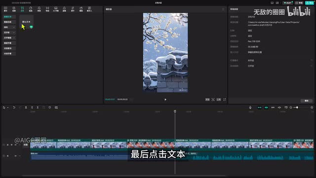 点击开始朗读,朗读的音频就生成好了。删掉添加的文本,朗读部分的视频和前面一致,复制一份即可。同理调整下时节奏,使得视频和音频匹配。最后点击文本,选择智能字幕,点击开始识别,字幕部分就生成好了,格子的部分可以额外加些字幕特效,处理完以后导出看一下效果吧。