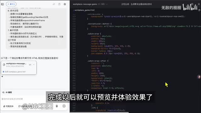 另外a i编程模块还提供了一些提示词模板,包括游戏产品网页点击即用生成同款。我们点击a i编程,输入我们的最终方案提示词,这个提示词我也会提供给大家。