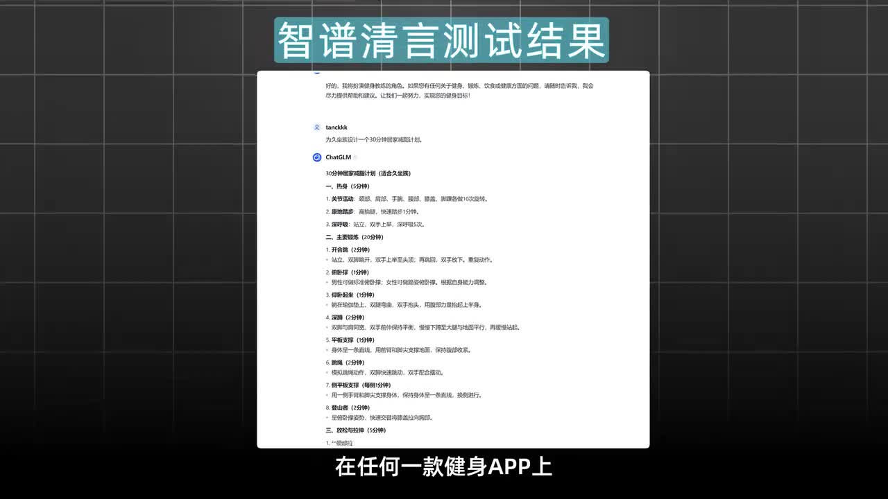 而在健身教练的扮演上,豆包、文心一言、讯飞、星火mini max以及deep sak等大多数模型都可以满足我居家减脂计划的定制。但是你看,志不轻言的回答就很死板了。他提供的信息在任何一款健身app上都可以轻松获取,而且他也没有提供更有效的激励监督。另外呢我也要批评一下天空a我明明已经告诉过他,我膝盖受过伤了,需要调整动作,他还是给我提供了很多抬腿的姿势。