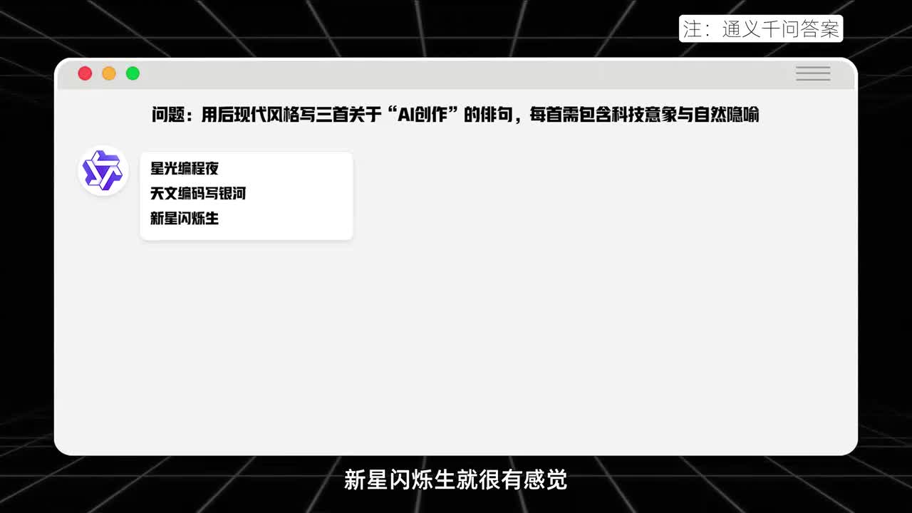 比如呢在凌晨三点便利店的悬疑故事创作里,质朴描绘了一个a i电源为了救人而欺骗人类的故事。在排剧创作中通义千问写的星光编程页天文编码写银河星星闪烁声就很有感觉。在关于宋慈的a r游戏关卡设计中文心一言的特点四通过不同宋词的句子串联起了古代与现代的城市。在凭借ai技术实现的想法太有意境了,导致我现在就想玩到。
