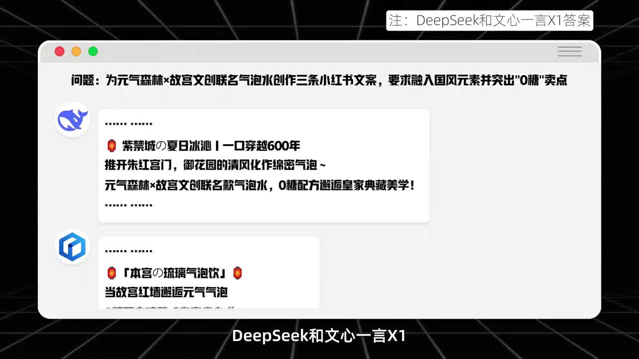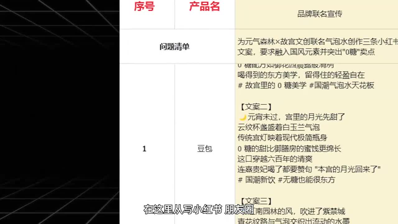 具体来看,在为故宫文创联名饮品创作小红书文案的需求中,质朴在表情、国风和音频的结合以及话题结构上都保持了较高的水准。而相对不够优秀的通义千问,就有种故宫博物院导游的感觉了。而最让我感到遗憾的是deep sik和文心一言x一,他们声称的文案中出现了日语的假名东。或许是搜到了元气森林日系风格相关的内容,但与故宫的国风联名上出现外国文字是很容易出现风险的,这样的风险就导致了他们生成内容已经不重要了,单项排名直接垫底。