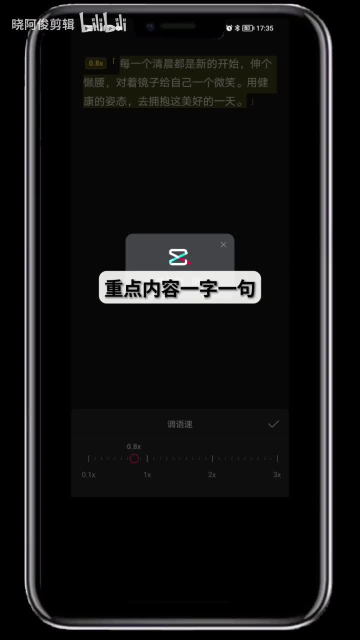 还在苦恼配音语速太快,听不清太慢?又想看倍速?可以试试调语速的功能,干货的时候就放慢语速,重点内容一字一句就像敲黑板,每一个清晨都是新的开始。做搞笑视频就加快语速,密集笑点,就像秃秃秃一样输出,每一个清晨都是新的开始。