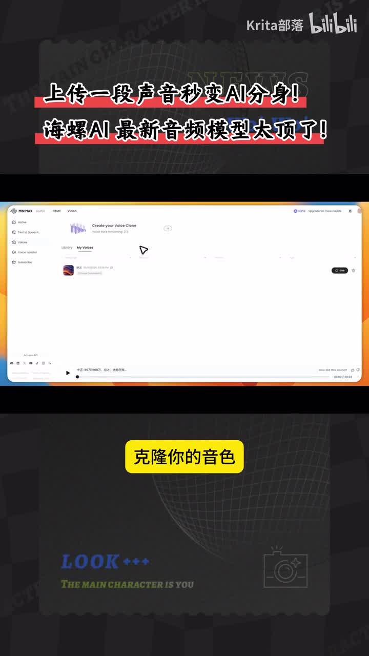 这就是登顶a i语音榜榜首的mini max audio,也就是海外版的海螺音频。那么本期视频就教大家如何用海外版的海螺音频完美复刻你想要的人物声音。