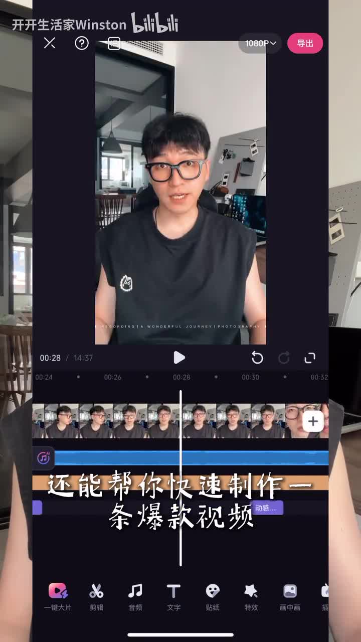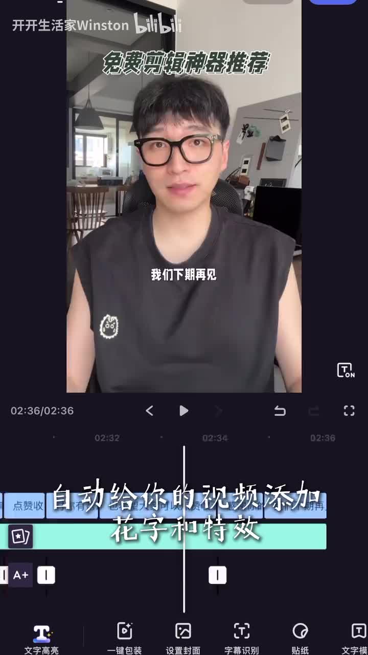 而且它也会根据你的剪辑习惯,自动给你的视频添加花字和特效。