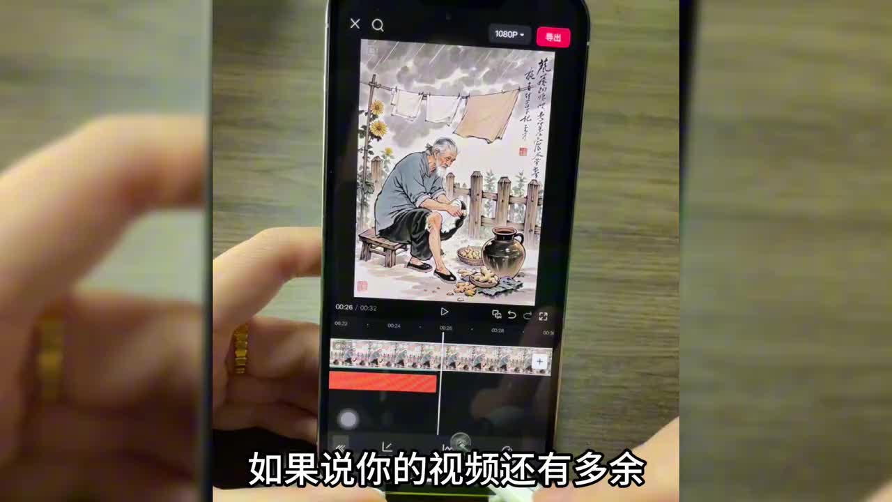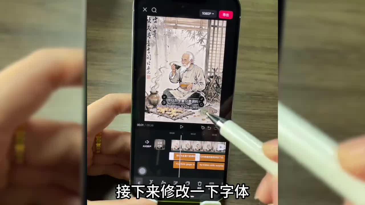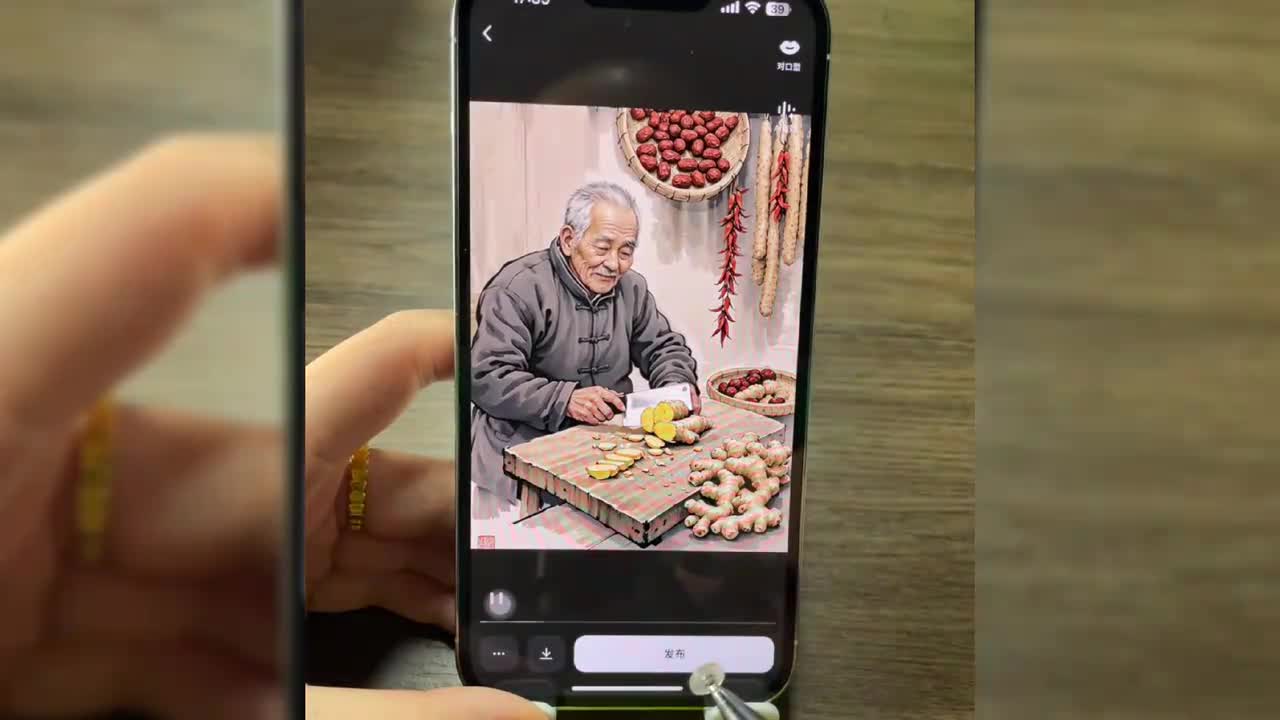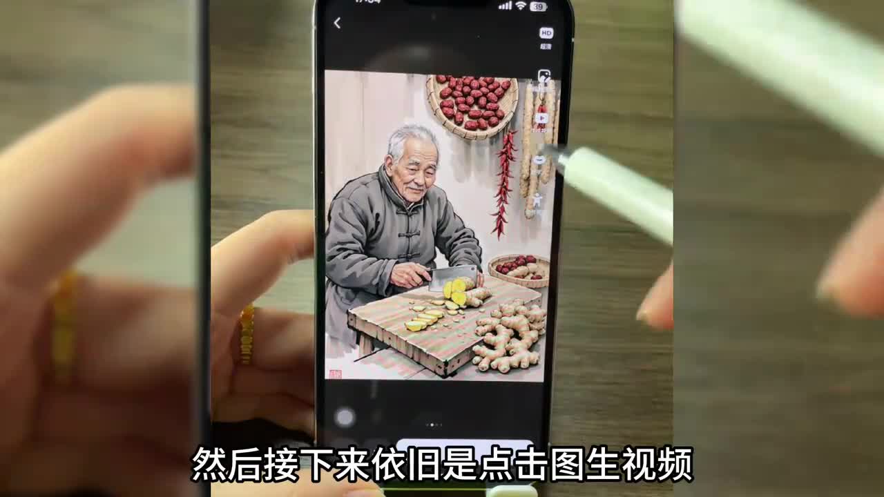 老爷爷拿起手中的刀,正在切手里面的生姜。好,点击生成。通过几秒钟的时间,我们第二段视频已制作完毕,一起来看一下效果。是不是这个刀正在动,正在切我们手里面的生姜?对不对?好,那我们第二段视频制作好了,那其他的三个分镜头呢按照我这个方法先去做成图片,再去做成视频的顺序依次操作一下。
