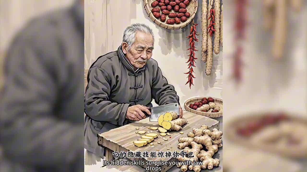 如果说音乐太长了的同学们记住在你视频结束的这一刻呢,把多余的音乐分割删除就可以了。好了,那我们这个养生视频呢就已经制作完毕了。怎么样?是不是相当相当简单?你以为生姜只是调料?它的隐藏技能惊掉你下巴。生姜里的姜辣素就像人体小太阳,吃撑了别急着吃药,它能加速肠胃蠕动,让消化速度提升百分之四十。