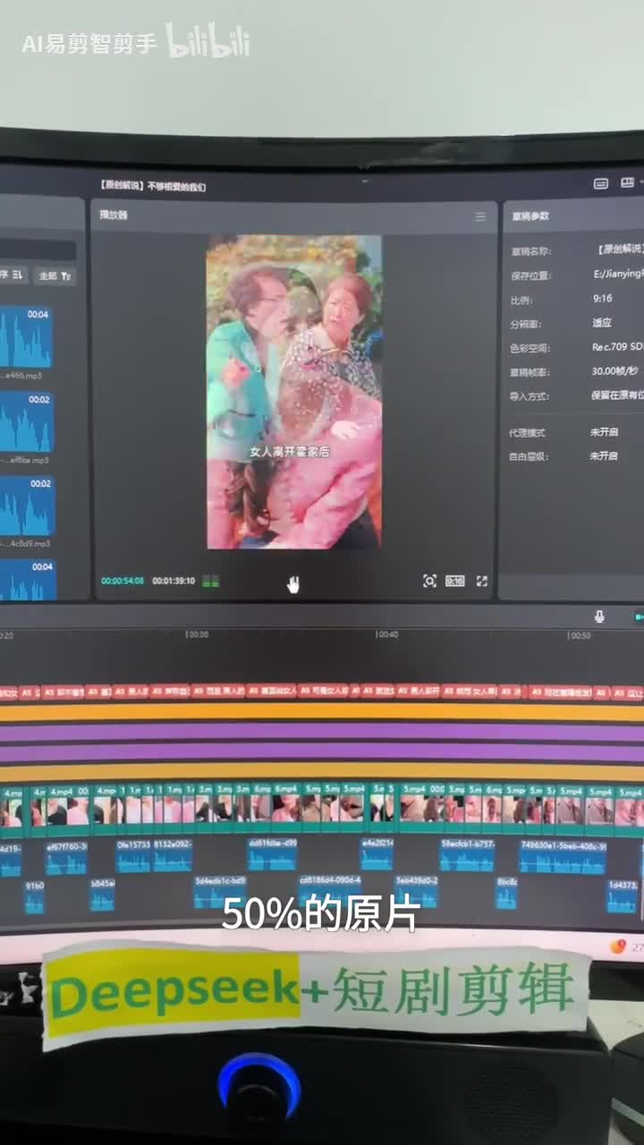 像这样的一条成品视频呢,是能够做到百分之五十的解说,百分之五十的原片,能够满足我们一个平台的需求。