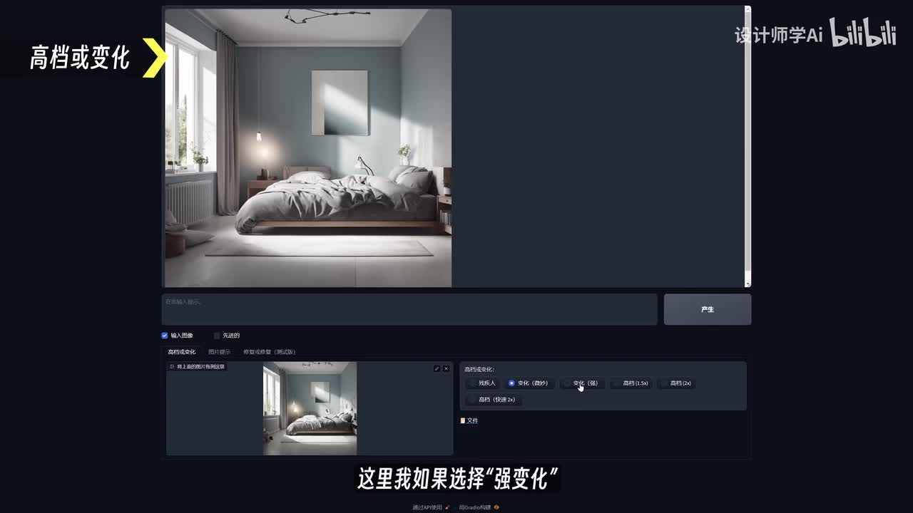 可以看到生成的图片和效果图非常类似,但是仔细看细节又是完全不一样的。然后修改一下输出图片的尺寸。这里我如果选择强变化,还是同样的参数,点击生成一下。生成的图片和原图看起来就完全不一样了,但是图片的内容和风格又很好的参考了原图的形式。