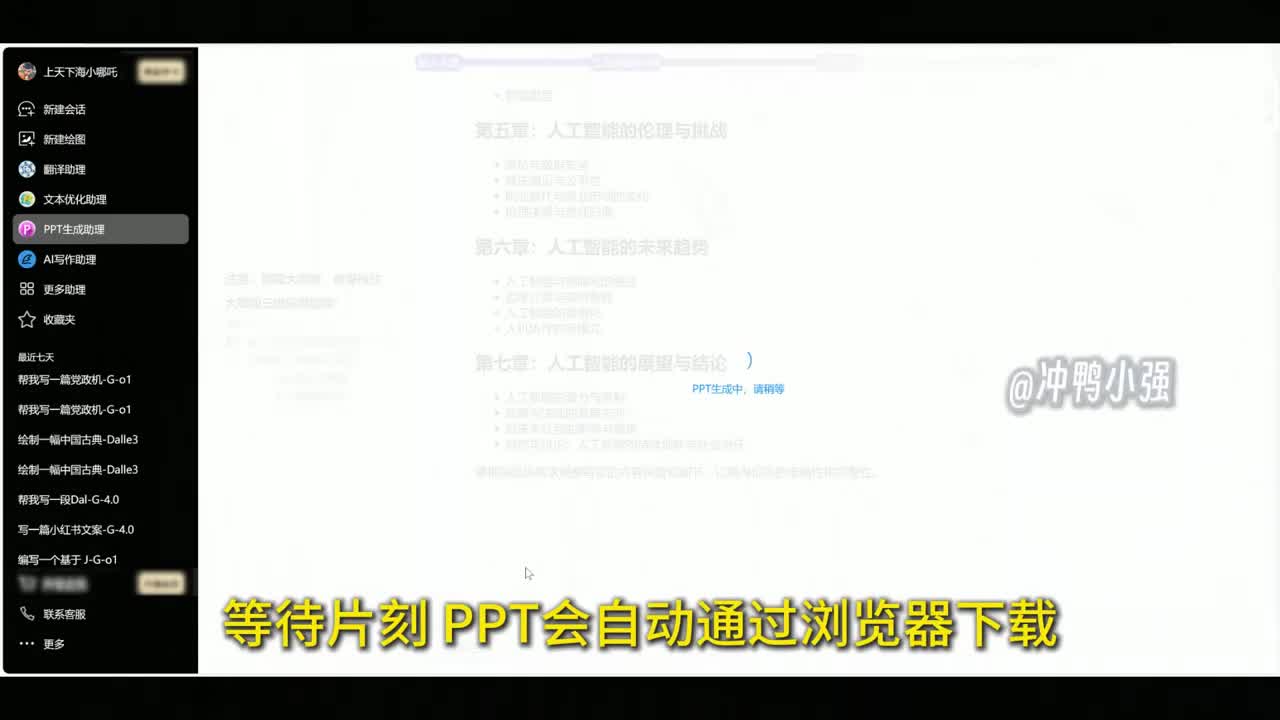 选好啦,点击生成p p t即可。等待片刻,p p t会自动通过浏览器下载,打开看一下。