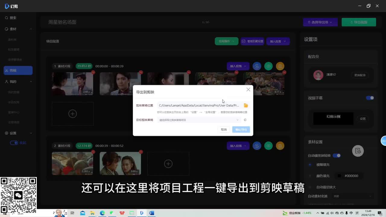 调整完毕后,在这里可以预览段落视频效果,点击这里可以重新导出视频。如果需要更加精细化的调整,还可以在这里将项目工程一键导出到剪映草稿。最后我们一起看下刚刚已经导出好的成片效果,跟人可是忽略了。说了没有,那也应该有一些很难忘的回忆。没有。
