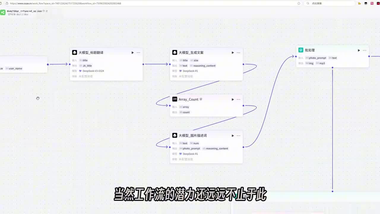 先在cos中搭建一个视频制作的工作流,然后生成一串i d s字符。你需要将字符复制到剪映小助手中,它会把生成的视频同步到剪映中,最后导出即可。一刀都不用剪就可以完成视频的制作。所有的工具链接都放在了视频最后,不要忘记收藏。