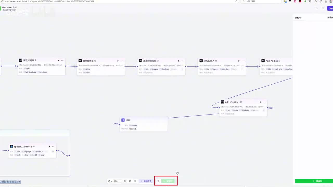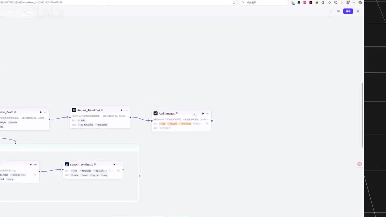 接下来设置vs i d。这代表着语音的音色,选择人机位没那么重的即可。speed的radio则控制语速,在为批处理增加一个输出变量m p三参数为语音合成data下的link。在批处理节点后,使用剪映小助手的创建草稿插进商店中就能直接搜索到输入视频的高度和宽度,在后面增加一个音频时间线。