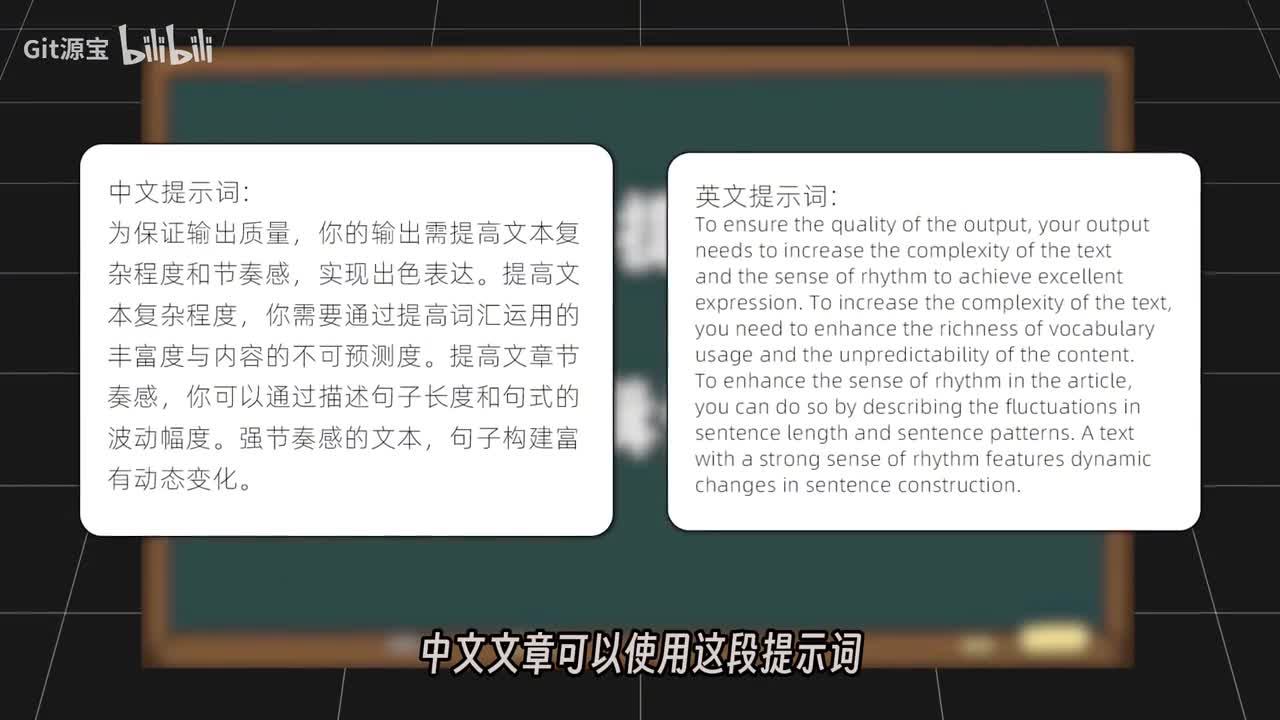 这个方法主要是让a i减少文章生成的强逻辑性和节奏性。英文文章可以使用这段提示词,中文文章可以使用这段提示词。当然这些提示词我也整理在了一起,方便你复制粘贴。你可以截屏保存或者先收藏下来,以备不时之需。