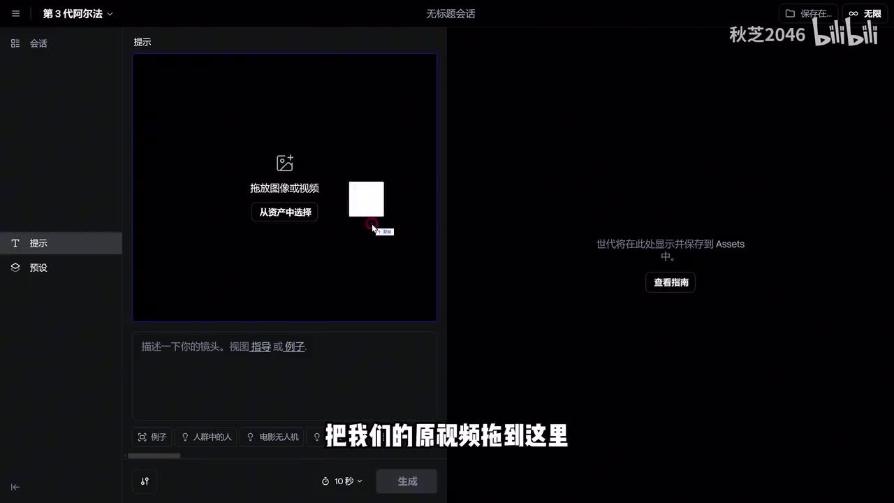 虽然转会这个效果出现了很久了,但是啊runway真三更新了这个功能之后呢,使用起来非常的简单方便,而且效果丝滑又好看。那怎么用呢?直接就到这个真三的视频生成页面,把我们的原视频拖到这里。注意啊,你上传多长的视频,它最后都只会给你生成十秒,而且是固定三比五或者是五比三的一个画幅。然后呢我们就在提示词这里去描述你想要的风格和内容就行了。