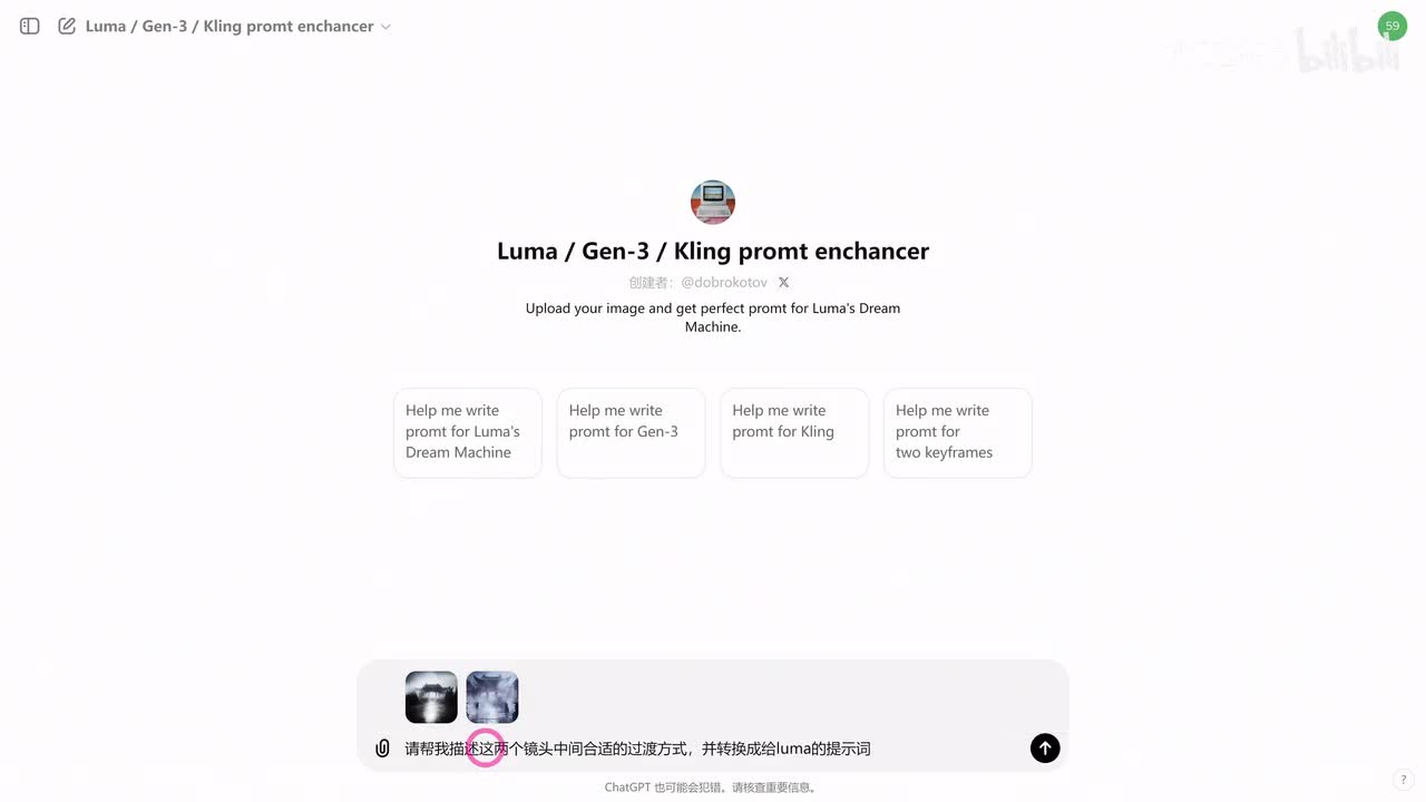 提示词呢其实我们也不用太操心,因为这一位g p t s他就很擅长。那他跟他一组,然后他跟他一组他跟他一组,让他出一点合理的运镜。然后直接把它的提示词考给鲁玛,再开一个增强提示,然后我们就可以依次抽卡了。最后啊再按照顺序给它一连接就好了。