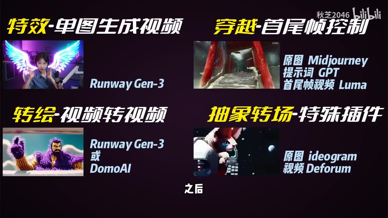 那同样的原理,只要有首尾帧功能的视频生成工具本质上都可以做到。只不过是我个人觉得这个鲁玛比较稳一点。第二种,把一条普普通通的视频变成不同的画风,也叫做视频转会。明天。
