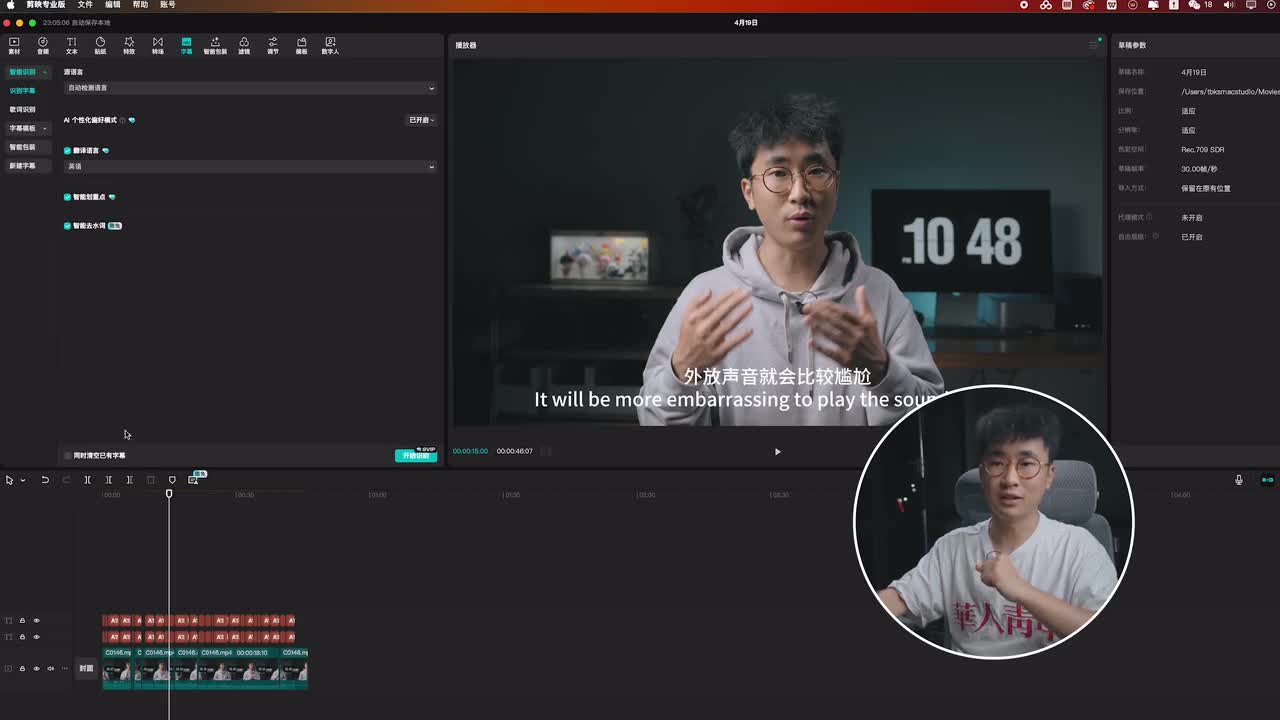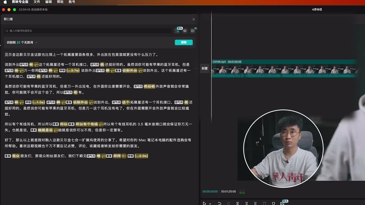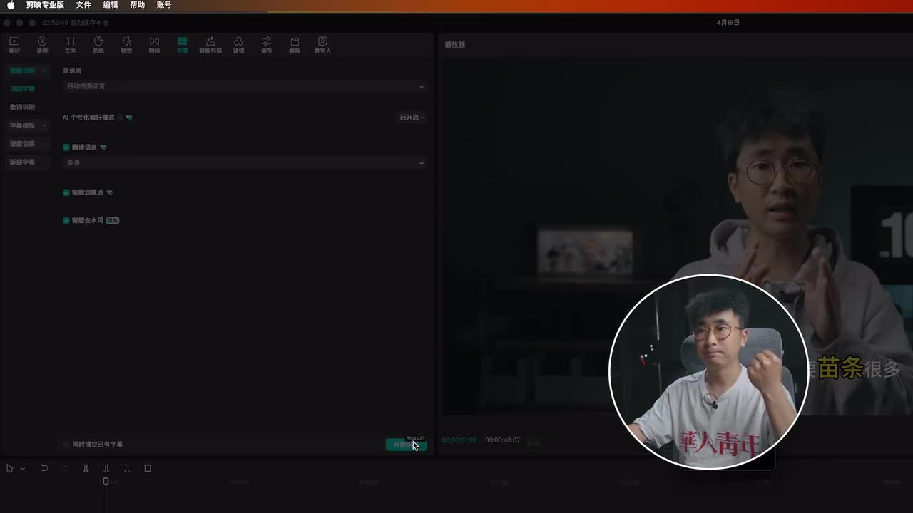 视频翻译这个功能和剪辑里面一个非常好用的功能完全挂钩,就是字幕识别。那在我字幕识别之前,我一般会先用这个智能剪口播这个功能。那这个功能我觉得非常的好用。