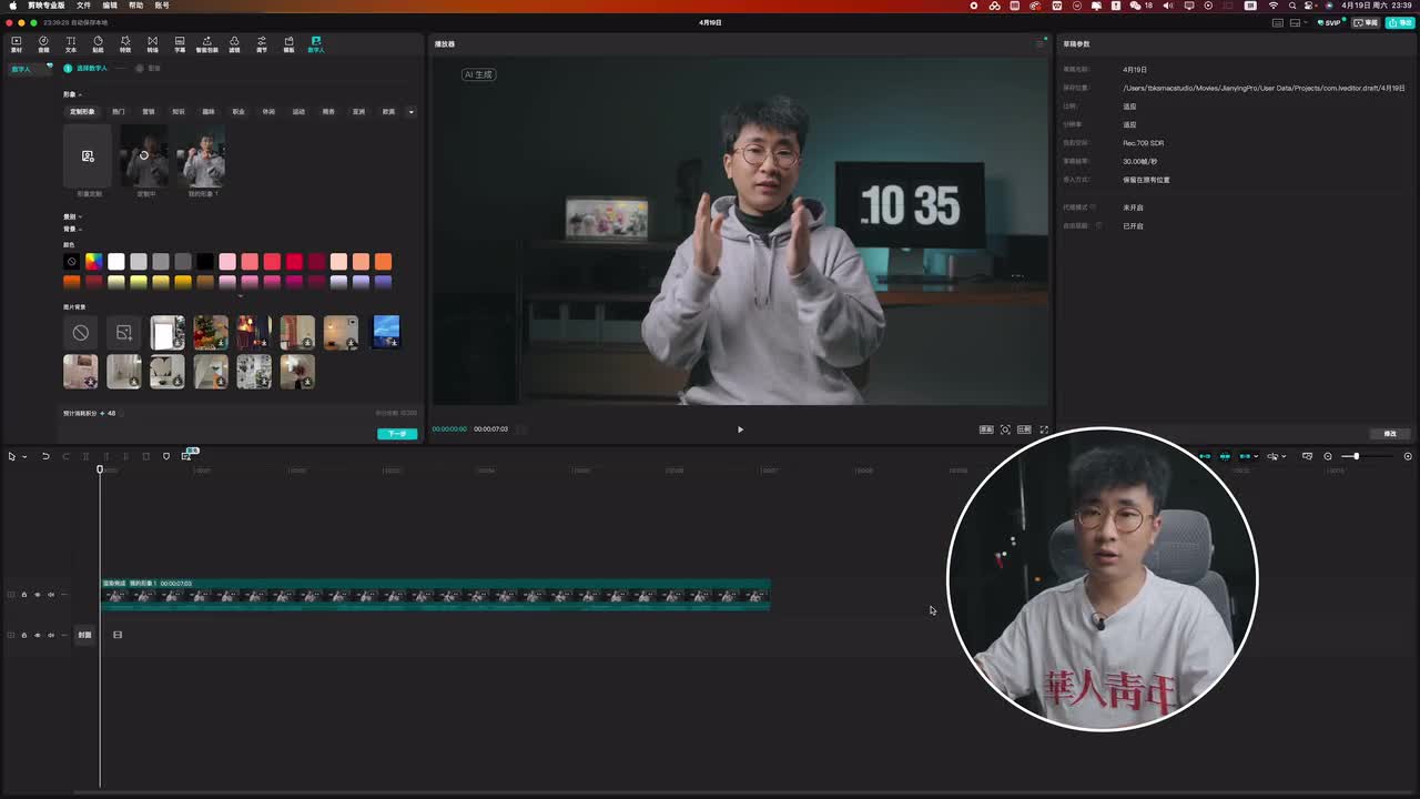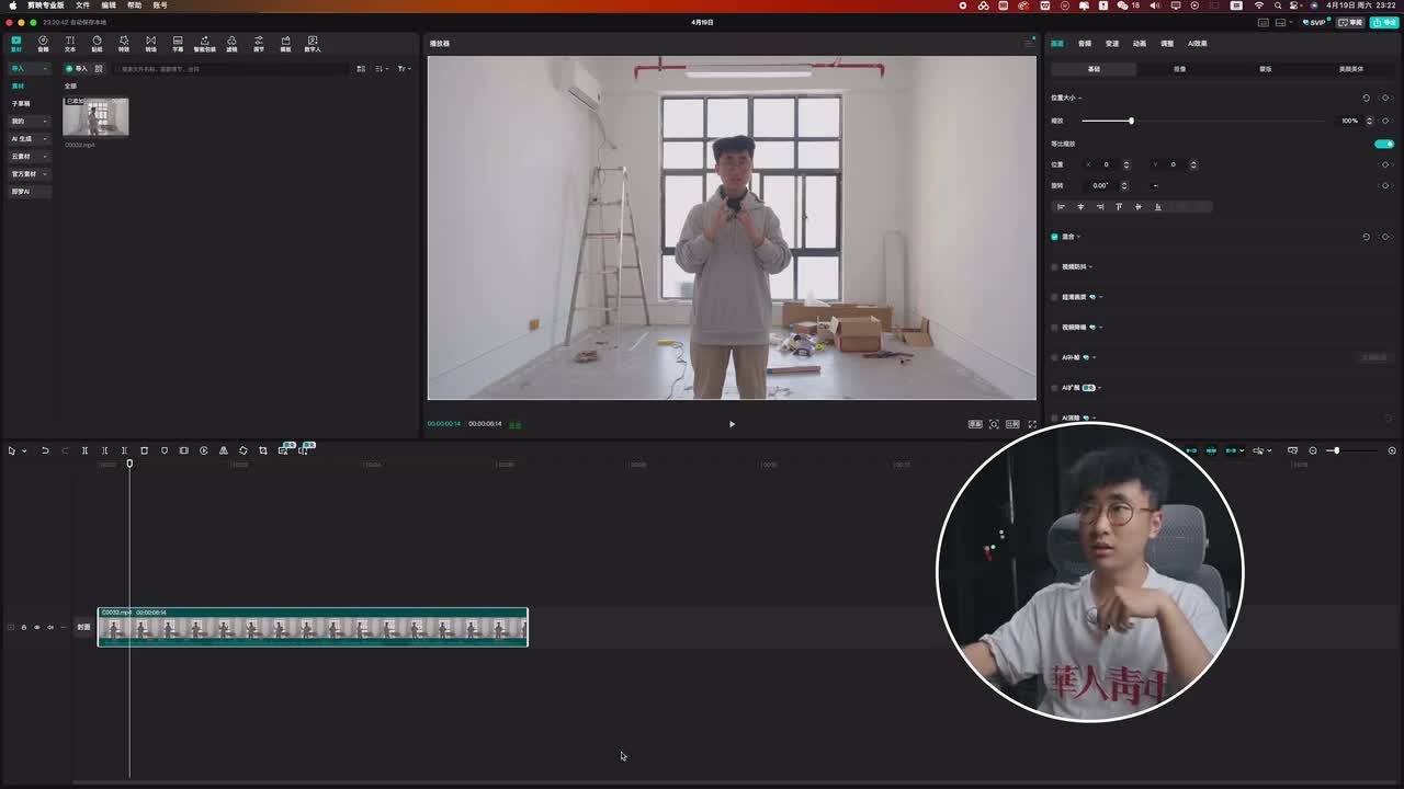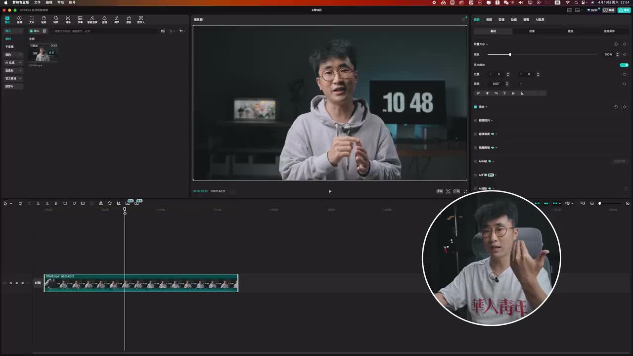 第五个a i功能,智能抠像。有时候我们说的话,我们希望把它放到画面上方,如果说你直接贴在画面上,感觉会不怎么出彩。如果说可以像这样就是出现在我的后面,就会感觉这个视频高级很多。