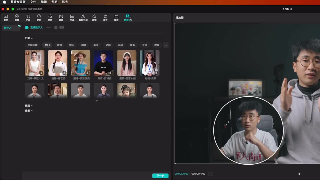 然后提交做好之后,我们点击我们的形象,然后呢点击下一步,把你需要的文案输入进去,然后呢点击这个生成,生成好了我们播放一下。但是剪映的a i功能远不止这些。所以这期视频就来大家分享二零二五年五个你不知道的剪映a i功能。