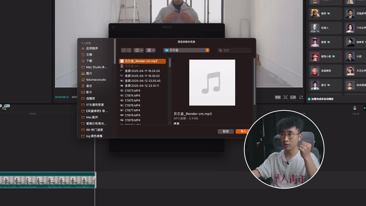 这个时候呢找到换音色功能,点击这个克隆,上传一段你说话的清晰声音。比如说我这里直接选用这个导入,它就会克隆出你的音色。你可以选择保留你的口音,或者说变成标准的发音吧,或者说你可以试听一下也是可以的。