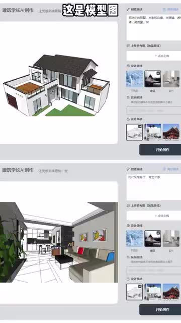 这是手绘图,这是建筑学长a i根据手绘生成的效果图这是模型图,这是建筑学长a i根据模型生成的效果图。