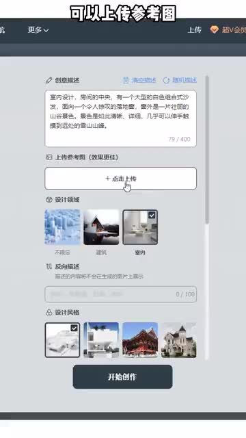 朋友a和b快分享给我在建筑学长ai绘画网站描述心中大概的设计内容,选择建筑或室内领域可以上传参考图,确定各类设置即可在线根据文字或图片快速生成效果图,提供灵感,提供参考,让设计出图过程变得更快。