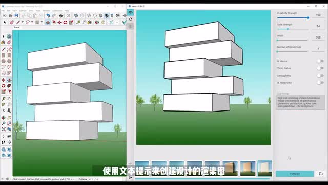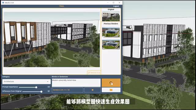 virus和echo a i一样,也是一款建模软件的a i渲染插件。建筑师可以通过virus使用文本提示来创建设计的渲染图,生成渲染图的速度比传统方法快得多,支持sketch和和rino使用,不需要过高的电脑配置。