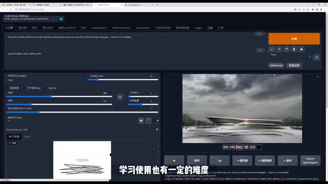 三stable diffusion可以说是目前设计师使用量很多的一款a i软件了。因为加入了control net的可控性,这对于建筑方面就会有很好的效果。