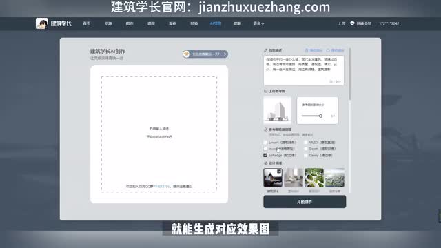 二、建筑学长ai绘图一个国内的在线建筑ai绘图网站,无需科学上网,无要求电脑配置,在线免费使用,一键通过文字或草图就能生成对应效果图,操作简单,效果还非常好。建筑室内景观、城市彩屏都支持线稿,模型截图或实景照片都能很好的根据描述生成效果图。
