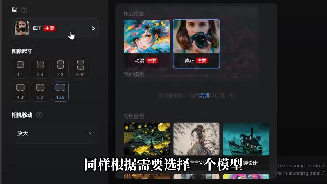 回到首页,点击左边的视频制作,同样根据需要选择一个模型,然后选择比例。