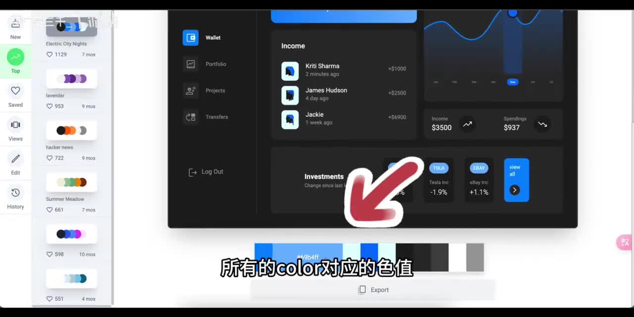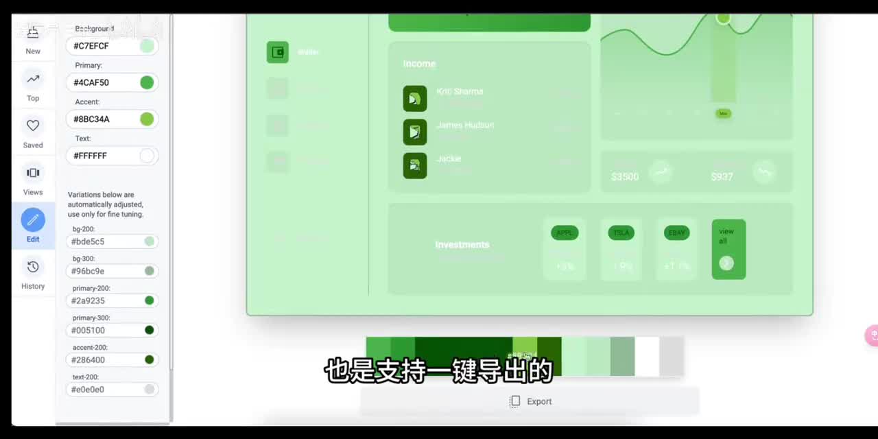 下方也列举出了网页里所有的color,对应的设置也是支持一键导出的。