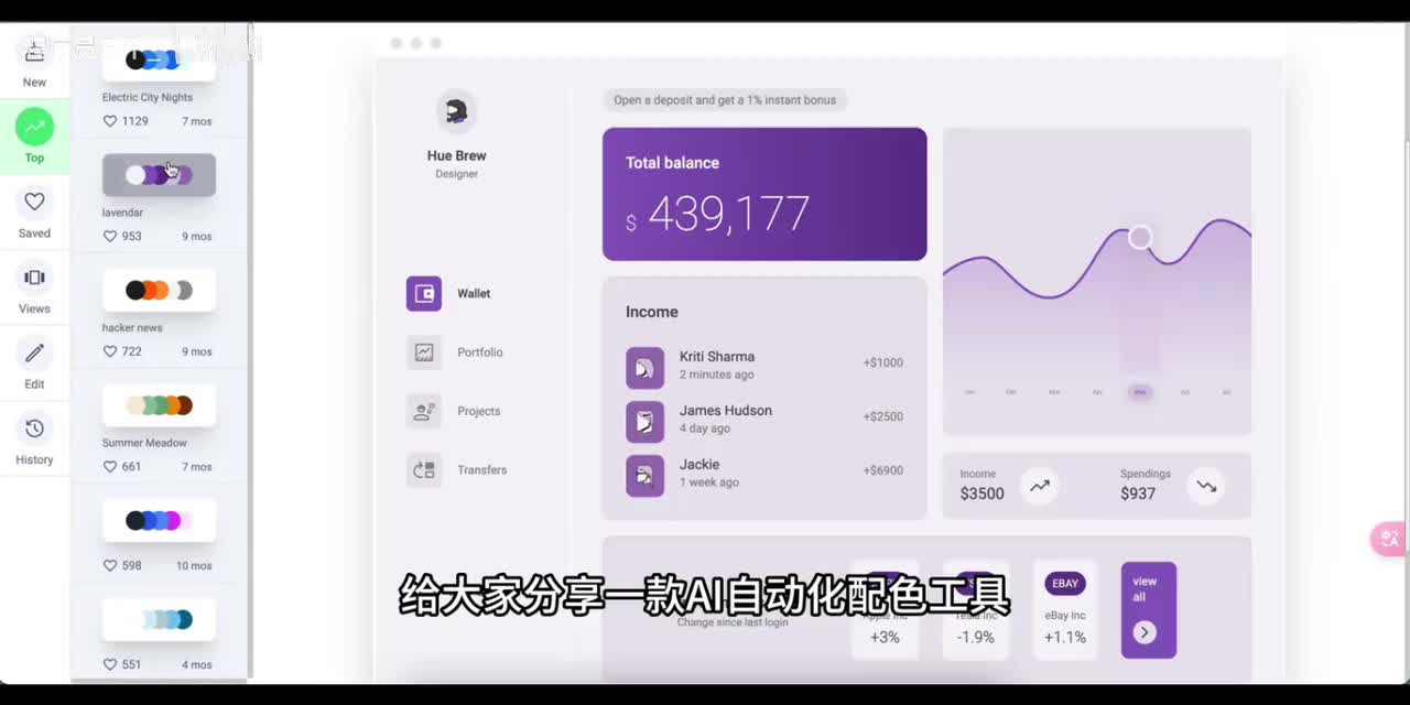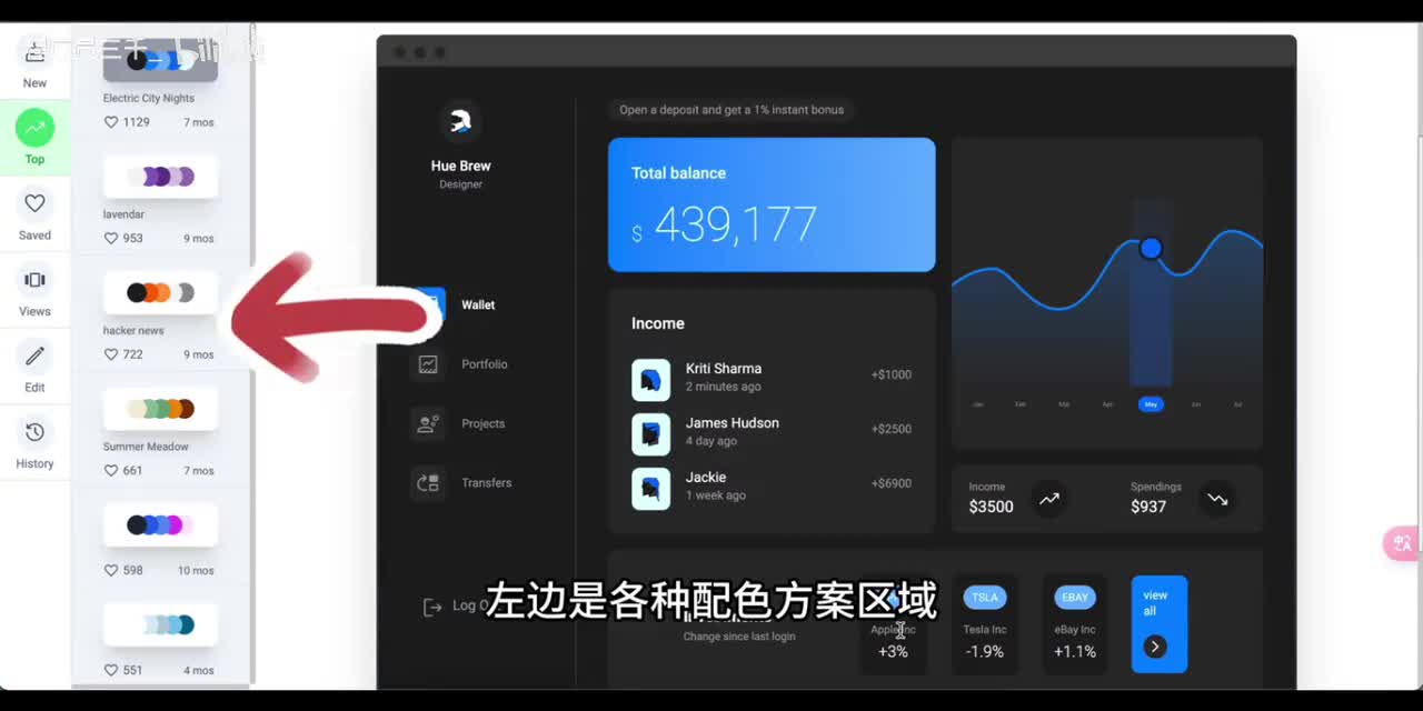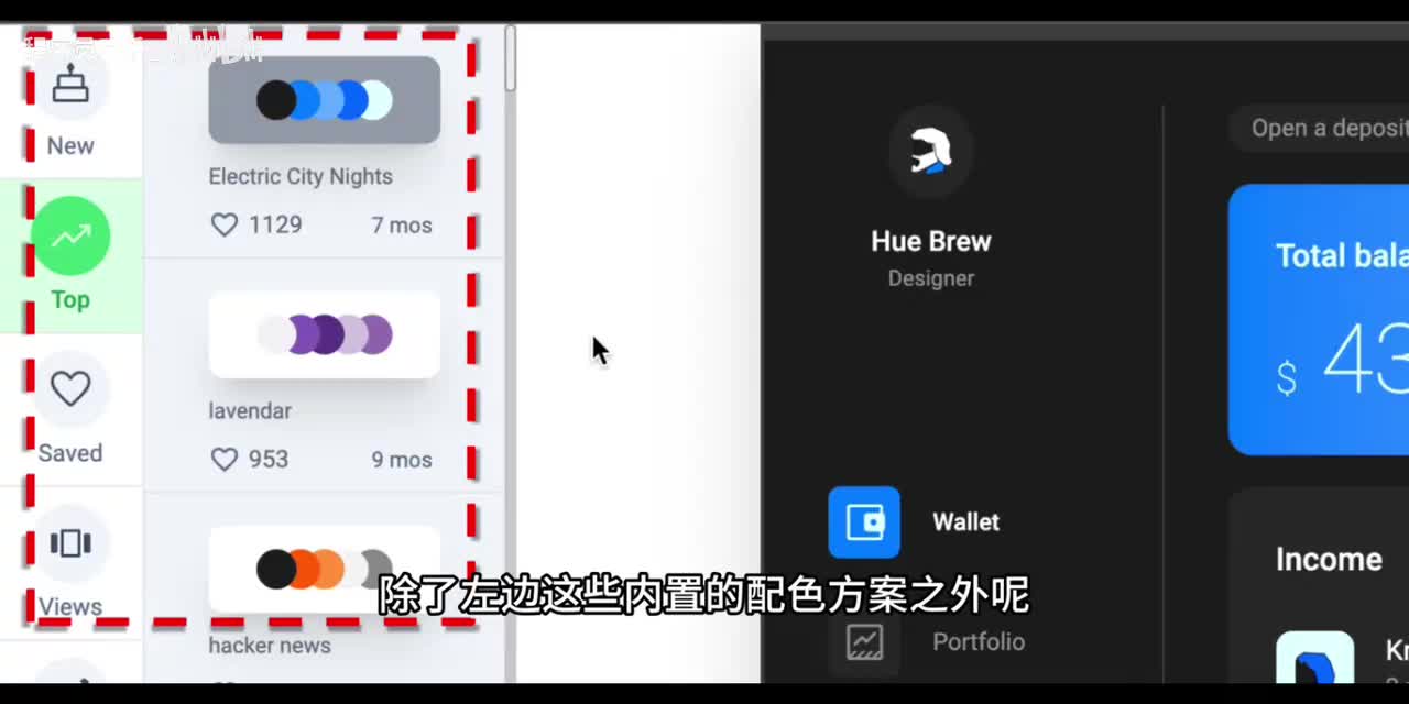 除了左边这些内置的配色方案之外呢,它还支持自定义主题色。