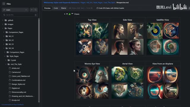这里我再额外给大家分享一个工具,这是github上一个适用于mint juny提示词写法的项目。里面汇集了各种摄影和绘画的专业术语。如果你不知道怎么去表达自己想要呈现的效果,不妨先到这里参考一下。mobley未来有计划添加更多的新功能,具体请关注他们的官方公告。