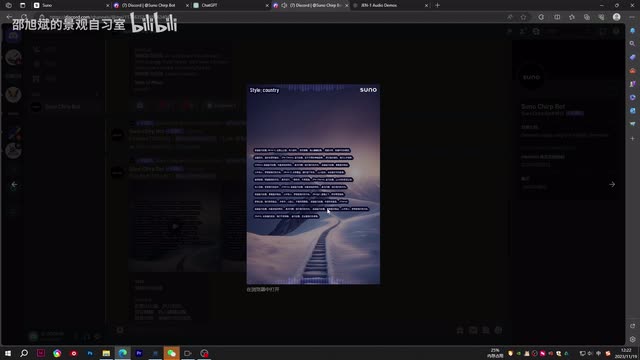 大家也可以自己去找一个喜欢的去去啊听试听一下。然后我们这里的话呃因为也会被大量冲走,所以我们是选择跟他私信的,跟机器人私信的方式。然后我们找到一个独立的窗口,让他给我们有一个相对来说就是实施简单的这样一个反馈。啊,这里因为我已经测试过了,所以呃上面有一些我之前测试的这样一些歌曲的界面。呃,实际上呢大家如果是第一次进入的话,你随便输入一个呃语句,它其实是一个空的窗口。呃,然后这里的话其实我也试过,就是在disco de窗口l里面去输入啊打工人之歌,然后生成的歌曲。第一次的情况也跟呃刚才测试的一样,它就会出现中英文混输的一个情况。然后第二首呢,它生成了一个这样的。
