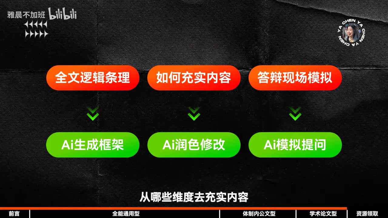 做学术成果的关键,而是推动我们学术创作效率的工具。而大部分时候我们在创作论文时,需要ai帮我们解决的,往往呢也是整篇论文的逻辑条理,从哪些维度去充实内容。不过视频的时长有限,我就不一一介绍对应的工具了。而是把每一个在学术创作中你会遇到的问题和能够解决问题的ai工具相对应整理在了这个评论区的表格中,所有的工具整理不易,求大家三连一下。