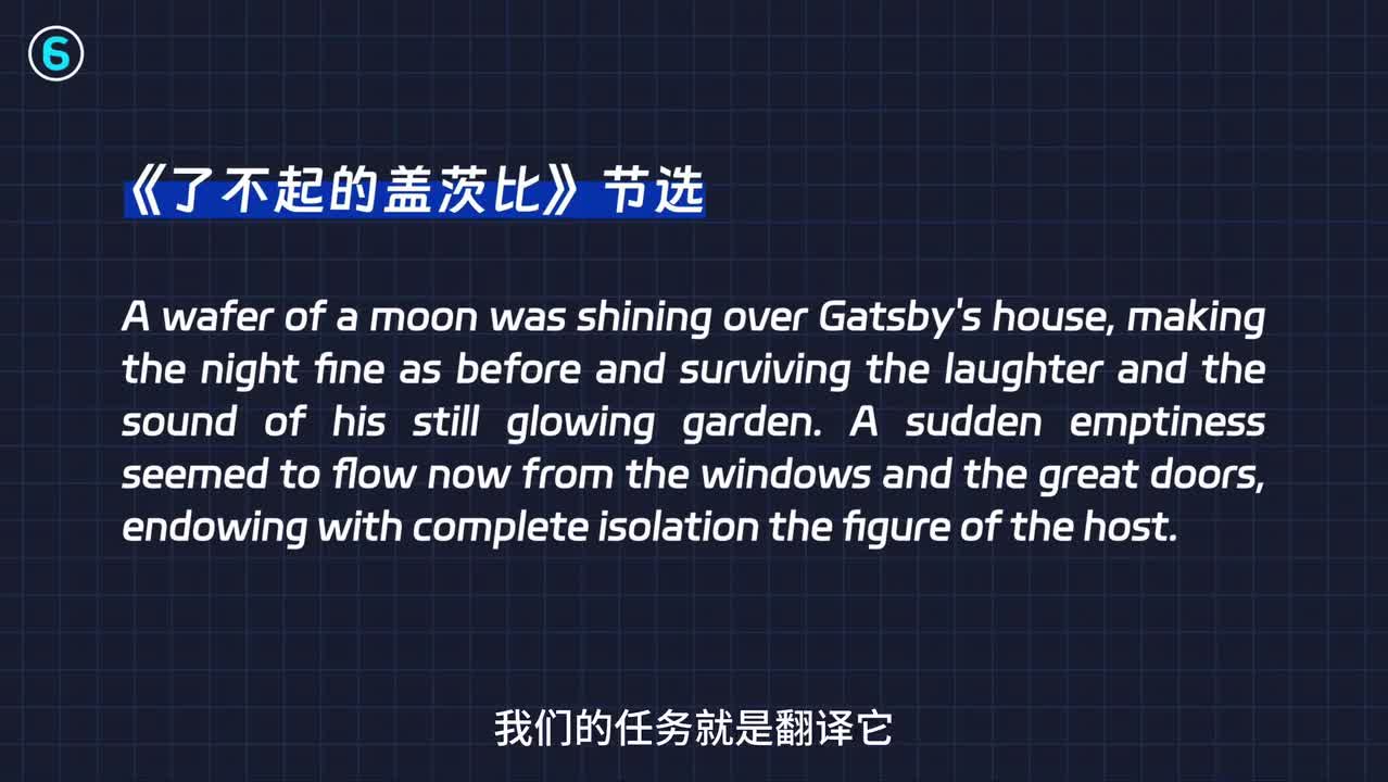 这种翻译的方式不会那么的精确,但读起来通常会比直译更加的顺流,所以更适合于文学广告等领域。那么现在就要选一段文章做案例,这是了不起的盖茨比的一段原文节选,我们的任务就是翻译它。当然也很鼓励你暂停一下,把你翻译的版本发在公屏上,再来和a i比一比,看看谁翻译的更好。那那现在我们不做任何的定,直接就把这一段文字发给a i我们这么说,请将以下内容翻译成中文,给到答案,就是普普普通通和翻译差不多。