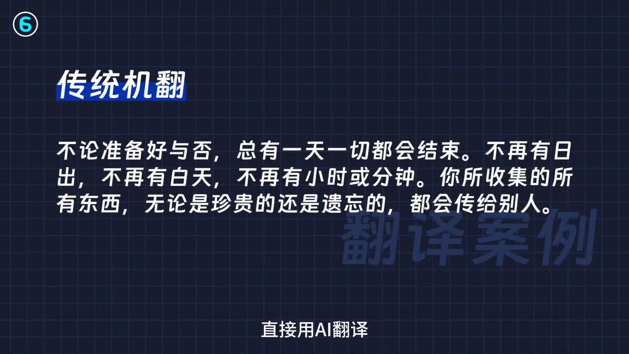 ai翻译能达到人类的水准吗?和百度、谷歌等传统积分差距有多大?直接说结论,a i翻译可以完胜传统积分,并且能够达到人类的水准。直接看个案例,有这么一段英文需要翻译,你可以暂停读一下。如果是你来翻译,人工翻译会是什么结果?可以把你翻译的结果发在弹幕上,比比谁翻的好。现在我们用传统的翻译工具翻译一版,会得到这样一个结果。