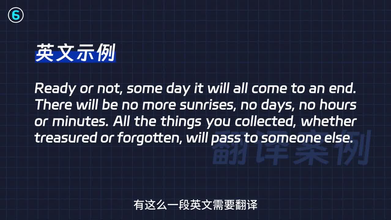 不论准备好与否,总有一天一切都会结束,不再有日出,不再有白天,不再有小时或分钟。你所收集的所有东西,无论是珍贵的还是遗忘的,都会传给别人。那一个不会用ai的人,直接用a i翻译会出来什么结果呢?给到的答案是这样的,可以暂停停一下下。是因为传统的翻译区别也不大,那是因为没有正确的调教ai那么正确教a i之后,你会得到一个完全不同的答案。