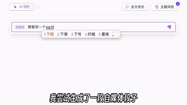 它这里还有一个新出的趣味后宫体和武侠风,也特别有意思。我尝试生成了一段自媒体段子,ai生成的语气和宫斗距离还挺像的,用它来写短视频段子也是个不错的选择。