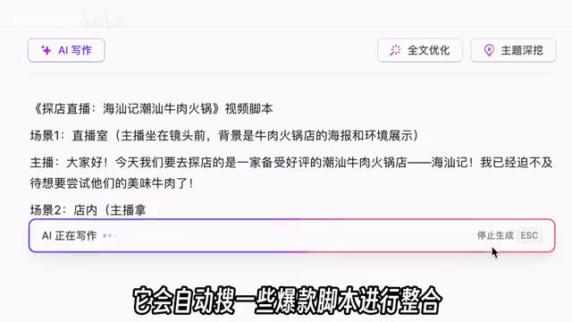 它会自动搜一些爆款脚本进行整合,这样一篇脚本就出来了。第二步,主题深化。