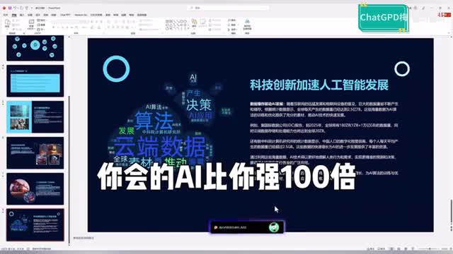 我们以人工智能发展趋势为例,点点鼠标选择标题和大纲,在选择内容的丰富程度,接下来就是见证奇迹的时刻,内容填充、图文排版、动画效果,整个过程由ai自动完成。