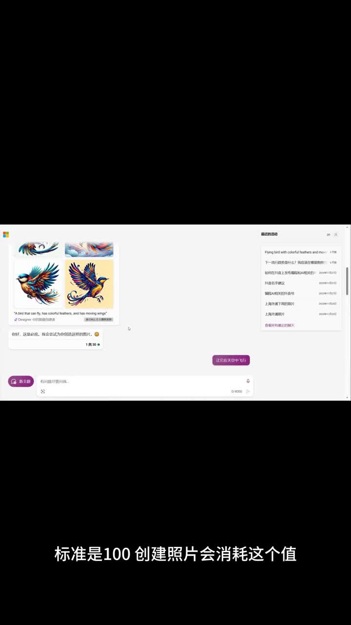 微软的copilot账号中有类似能量值的标记,标准是幺零零,创建照片会消耗这个值,如果用完,那生成照片时间会更长。