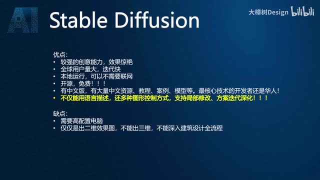 这是一个巨大的优点。第五个优点呢,它有中文版,有大量的中文资源、教程、案例模型。其关键是你们最核心的技术开发还是华人。最重大的优点是,它不仅能够让语言描述,还有多种图形控制方式支持局部修改、方案迭代深化,这些它都支持。而且最关键的这个图形控制技术就是controller。