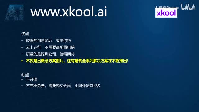 他这个呢是一个华人小伙,在二零二三年二月份刚发明的开源的。当然它也有缺点,它的缺点呢需要本地电脑,有高配置的电脑。你至少有一块高配置的电脑。当然它有一个共同的缺点,它仅仅是二维效果图,不能出三维,不能深入到建筑设计的全流程。我们再看一下小富科技的a r当然它也有明确的优点,同样具有较强的创意能力、效果经验。
